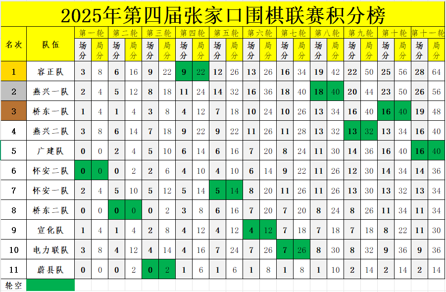 作为张家口业余围棋最高水平的赛事,本届联赛采用元老组个人积分赛及队式循环赛形势开展。自今年5月启动以来,共吸引了10支代表队、近百名选手参与角逐。赛事先后在河北燕兴机械厂、张家口十六中、宣化假日绿岛、抡才书院、怀来世界葡萄酒之窗等多个地点举行,覆盖范围广泛,赛事组织有序,充分展现了围棋文化在张家口地区的深厚底蕴与广泛参与。